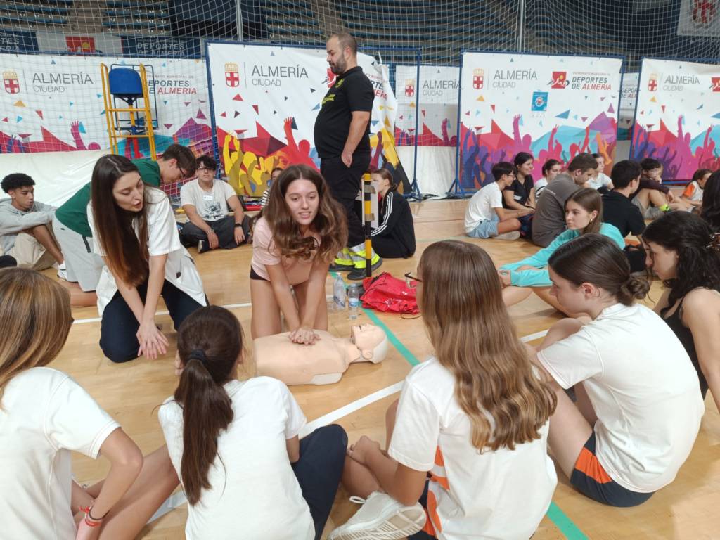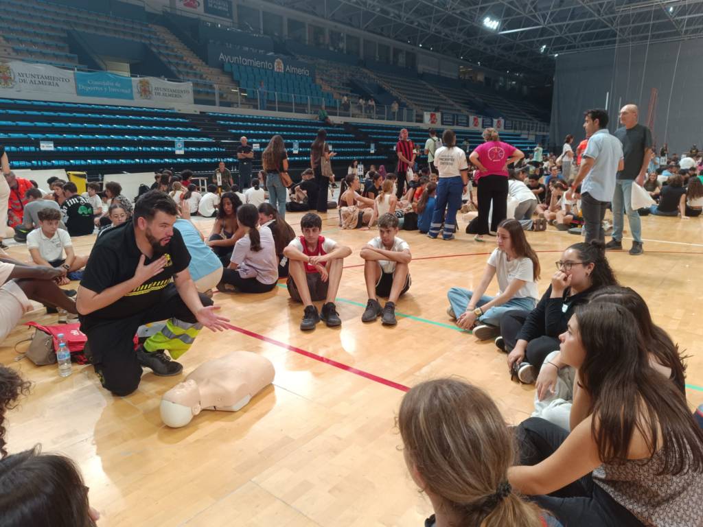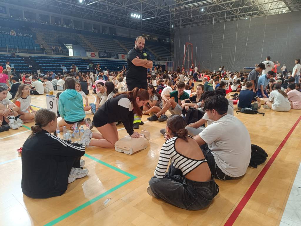 El alumnado de 3º ESO y Formación Profesional Básica Específica de Agrojardinería del IES Maestro Padilla ha participado en la Cardiomaratón 2025, que se realizó el pasado día 16 de octubre,  con motivo del Día Europeo ante la Parada Cardíaca. Tuvo lugar en el Pabellón de los Juegos del Mediterráneo de Almería, actividad que se celebra desde el año 2013 y organizada por la Consejería de Salud y el Centro de Emergencias Sanitarias 061 en Almería en colaboración con la Delegación Territorial de Desarrollo Educativo y FP. La actividad ha consistido  en una explicación práctica con maniquíes de simulación de Reanimación Cardio Pulmonar y llevada a cabo por monitores voluntarios sanitarios, de protección civil, y de los cuerpos y fuerzas de seguridad del Estado. Ha permitido a nuestro alumnado formarse en las técnicas básicas sobre cómo actuar ante una parada cardiorrespiratoria (PCR), cuándo utilizar la posición lateral de seguridad, cuándo y cómo llevar a cabo una reanimación cardiopulmonar (RCP) y conocer la maniobra de Heimlich, actividades todas ellas “SALVADORAS DE VIDA”. Queremos agradecer a los monitores voluntarios sanitarios, de protección civil, y de los cuerpos y fuerzas de seguridad del Estado su implicación todos los años en el desarrollo de estas actividades tan importantes para nuestro alumnado, y agradecer también al profesorado por colaborar en dicha actividad.