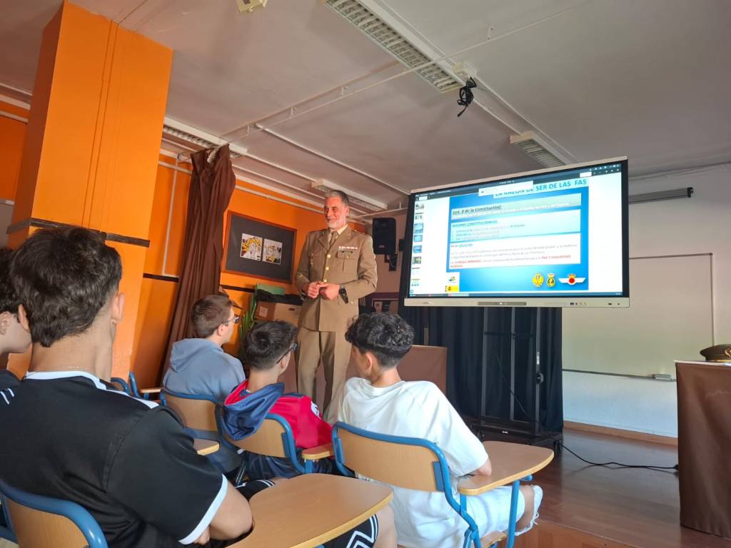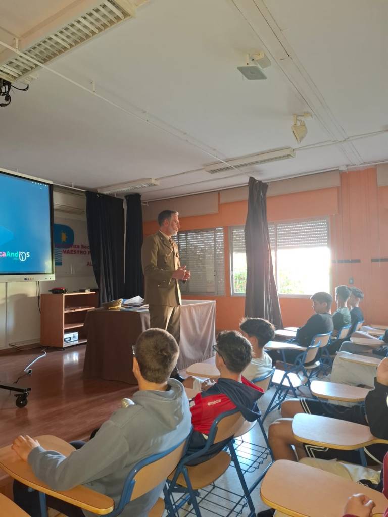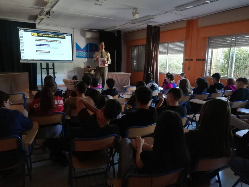 Los días 13 y 14 de abril de 2026 nos visitó Miguel Ángel Florentino, comandante del Ejército de Tierra, para impartir unas charlas informativas al alumnado de nuestros cuatro grupos de 4º ESO. Estas charlas están organizadas por el departamento de orientación del centro y su objetivo es que nuestro alumnado tenga conocimiento de que las Fuerzas Armadas es una posible salida profesional. Miguel Ángel les indicó a los chavales que la carrera militar es otra alternativa para conseguir un trabajo, las diferentes especialidades a las que pueden optar dentro de la misma, y que a lo largo del mes de mayo pueden realizar la solicitud e iniciar la carrera militar. El alumnado estuvo muy atento y algunos/as mostraron su interés haciendo preguntas al respecto. El comandante nos dejó un ejemplar del libro “Cien años del Campamento Álvarez de Sotomayor”. Desde el IES Maestro Padilla queremos agradecer a Miguel Ángel Florentino los años que lleva colaborando con nosotros para compartir toda la información relativa a esta salida profesional.
