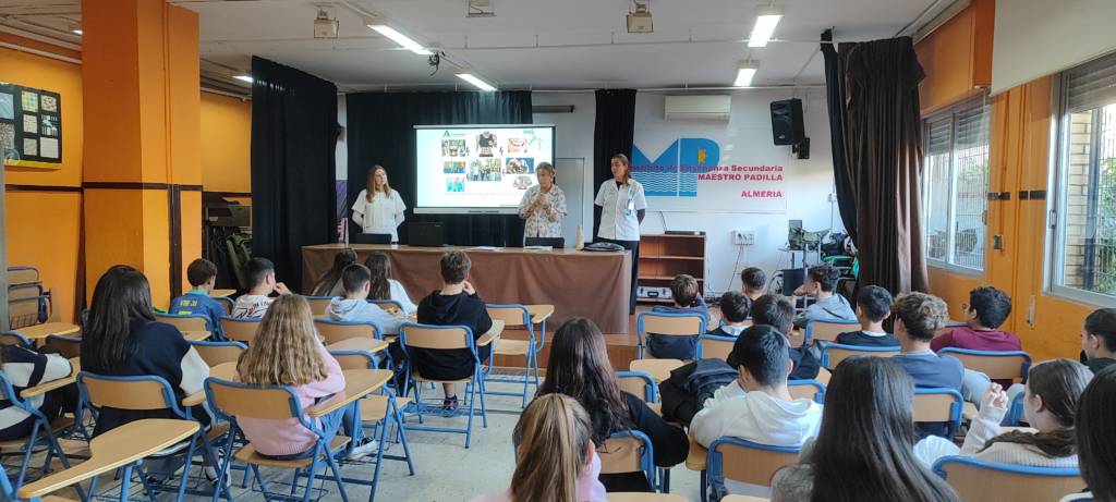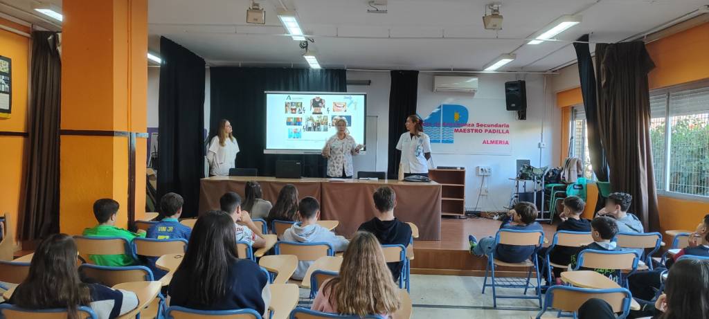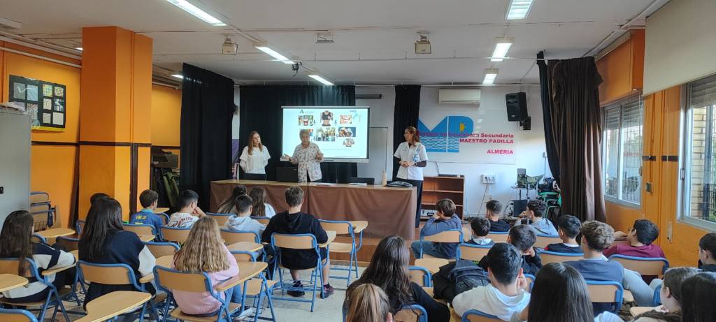 Los días 11 y 21 de noviembre de 2025, y el 30 de enero de 2026, Ana Fernández Arias, enfermera referente del IES Maestro Padilla y perteneciente a la Unidad de Gestión Clínica de Ciudad Jardín, junto con Laura Gómez y Olga Skvortsova, estudiantes de cuarto curso de enfermería en la UAL, impartieron unas charlas sobre “AUTOESTIMA Y ASERTIVIDAD” a nuestro alumnado de 2ºESO, Aulas Específicas y Formación profesional Básica Específica de Agrojardinería. Estas charlas están enmarcadas dentro del Programa Hábitos de Vida Saludable, y la línea de actuación inteligencia emocional.