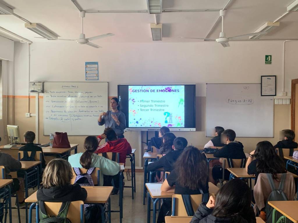 La línea de actuación “gestión de emociones” es muy importante para nuestro centro ya que ayuda a nuestro alumnado a formarles en la identificación y gestión de sus propias emociones. Desde hace ya cuatro cursos académicos, cada grupo de 1º ESO, 2º ESO, Aulas Específicas y Formación profesional Básica Específica de Agrojardinería,  recibe una charla trimestral sobre gestión de emociones en la adolescencia impartida por la psicóloga Elena Ruiz González. Estas charlas están enmarcadas dentro del Programa Hábitos de Vida Saludable y la línea de actuación inteligencia emocional. En esta primera sesión con nuestro alumnado de 1º ESO, desarrollada el día 21 de noviembre, se trataron temáticas como la situación actual en España de los jóvenes y la salud mental, donde mostraron diferentes estudios que demuestran la alarma social por este tema. También se abordaron los conceptos aprendidos, la gestión emocional, la diferencia entre emoción y sentimientos y se profundizó en el campo de las emociones y sus consecuencias en nuestra vida. Se dieron pinceladas sobre el proceso de la adolescencia y cambios en el cerebro y al final de la sesión se abordó un tema de gran importancia: el mal uso de las tecnologías y sus consecuencias. Todas estas temáticas se abordaron exponiendo casos reales y tratando de resolverlos. Son charlas muy dinámicas e interactivas donde el alumnado participa activamente y se resolvieron sus dudas. Queremos agradecer a Elena Ruiz González su implicación en el centro a la hora de desarrollar estas charlas a nuestro alumnado de 1º ESO.