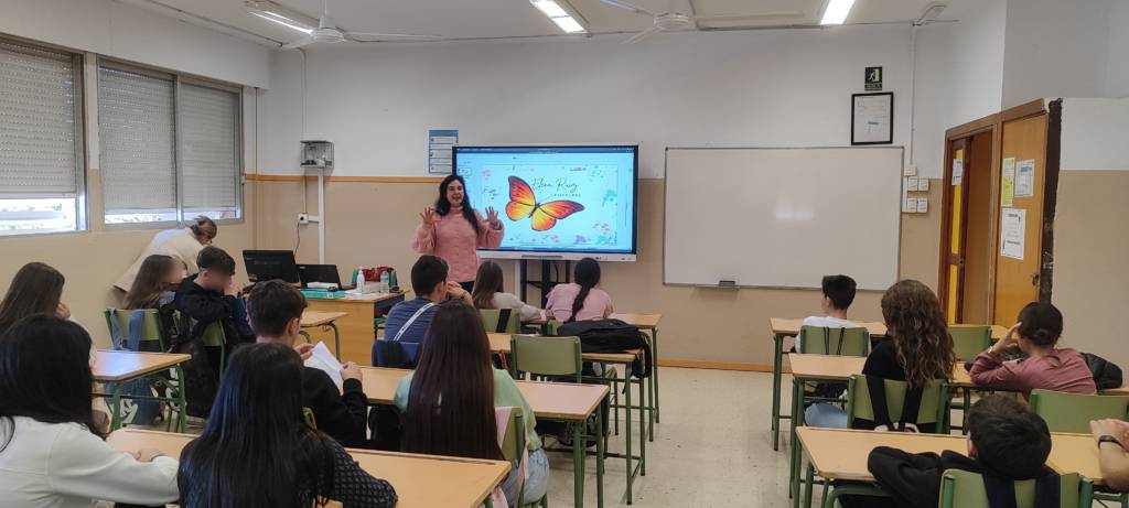 Se aportaros datos estadísticos, estudios y recogida de datos reales desde 2017 hasta la actualidad y enfocándolos en el colectivo de 12 a 19 años. Se explicaron los conceptos de suicidio y conductas suicidas, analizándose el proceso desde que aparece la idea de suicido hasta que se ejecuta, poniéndose de manifiesto la complejidad de dicho proceso. También se abordaron aspectos de cómo se generan los pensamientos y crean red neuronal, las señales de alerta y la importancia de detectarlas. Finalmente hablamos de la función del cerebro para interpretar la realidad. Todo ello se abordó analizando casos reales y tratando de resolverlos. Son charlas muy dinámicas en las que los alumnos/as participan activamente e incluso algunos/as exteriorizan sus propias experiencias. Elena estuvo resolviendo preguntas y rompiendo ideas equivocadas sobre el tema.